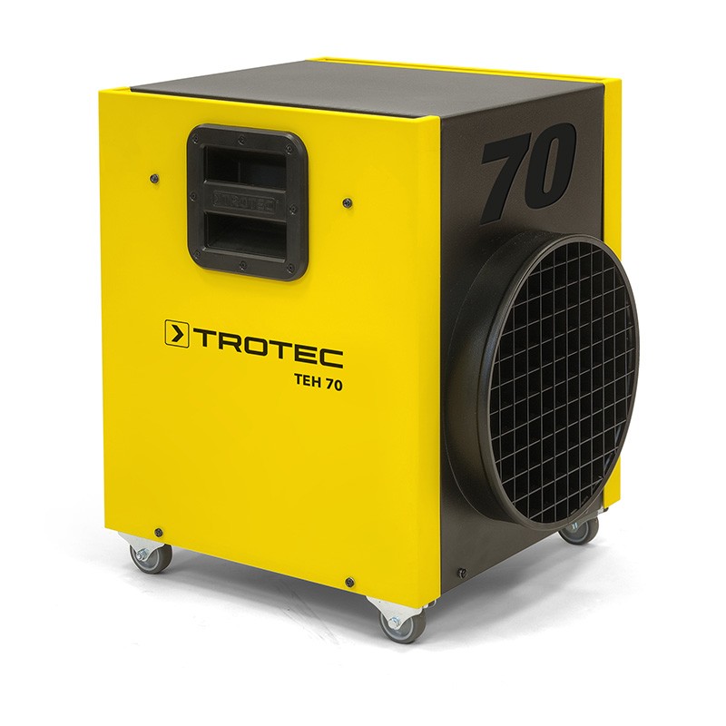 Verrijdbare elektrische ventilator kachel met een schakelbare verwarmingscapaciteit. Robuuste kachel, speciaal ontwikkeld voor het ondersteunen van het droogproces na waterschade of het veilig verwarmen van ruimtes. Geschikt voor slangaansluiting, maximale lengte 10 meter en stapelbaar.